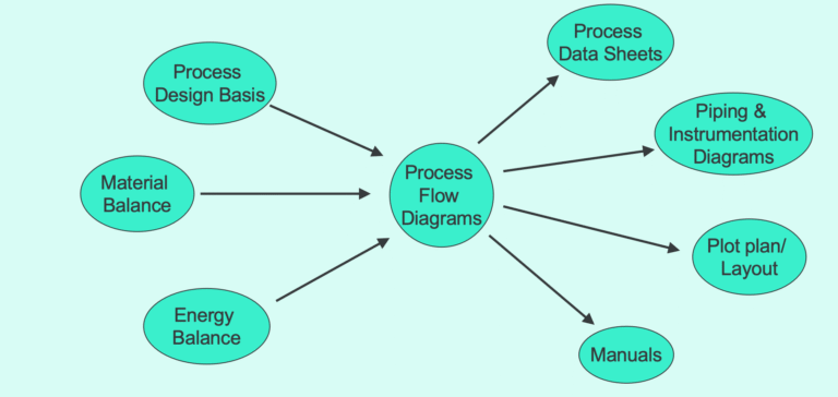 PFD shows the overall flow of materials and energy. P&ID gives detailed information about instruments, valves, and control loops. PDS contains technical data for each instrument or equipment